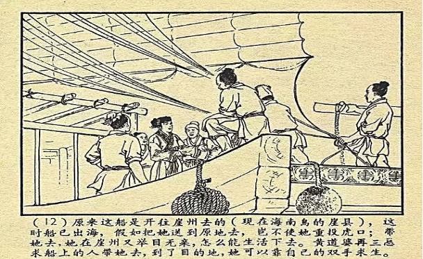 连环画《黄道婆》中黄道婆乘船前往崖州的场景。资料图