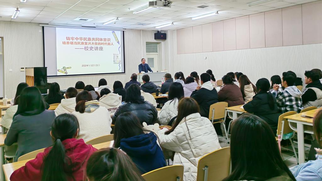 为全面落实学校“三全育人”工作要求,发挥档案、校史资教育人、文化育人作用,12月3日晚,档案馆(校史馆)联合经济学院开展面向“成长守望计划”学生、校史馆讲解队学生、勤工助学学生的学习交流活动。活动邀请学校70年校史编辑部主任李庆福老师作了题为《铸牢中华民族共同体意识 培养堪当民族复兴大任的时代新人》校史讲座。