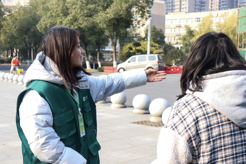 经济学院2021级考生魏霖枫感慨道:“今天天气很冷,但是志愿者的服务特别周到,存放手机便捷高效,为我们节省了不少时间。一年前,我也曾是‘石榴籽’志愿服务队的一员。如今,这抹红依然带给我温暖和鼓励。”