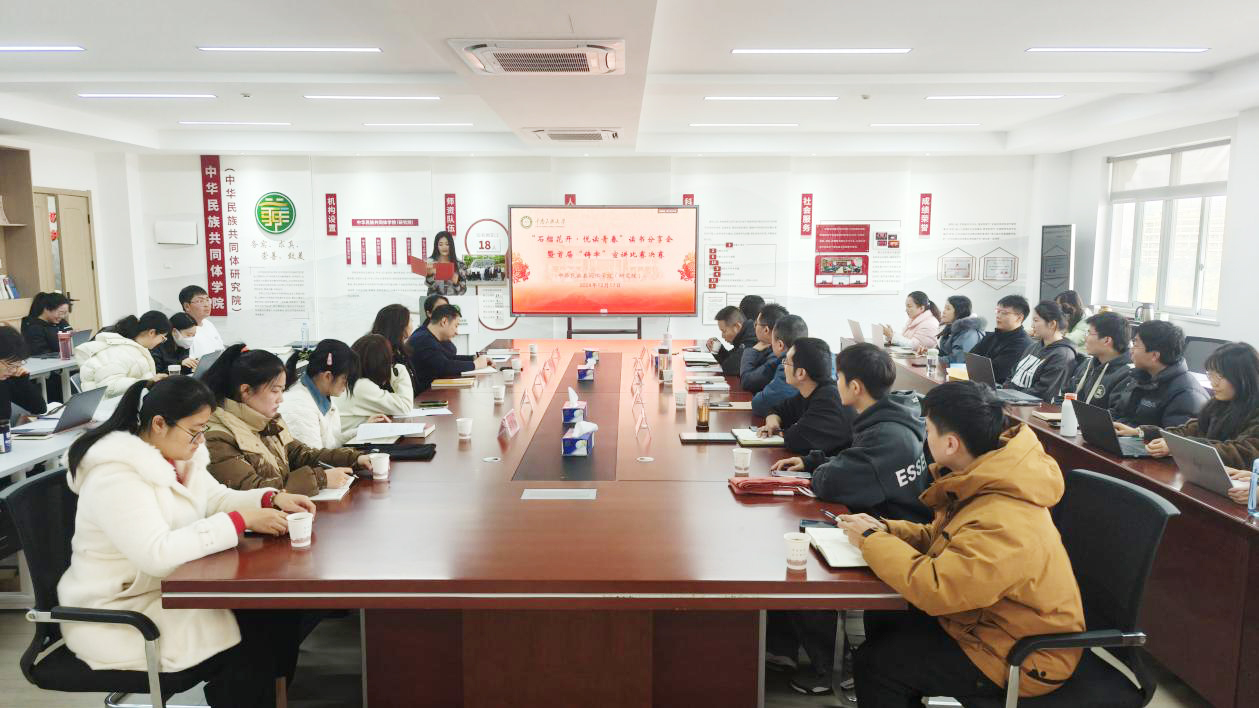 12月17日下午,中华民族共同体学院博士、硕士生党支部以及“铸牢中华民族共同体意识”宣讲团在图书馆北书院联合举办第六期“石榴花开”读书分享会暨首届“铸牢”宣讲比赛决赛。中华民族共同体学院班子成员、概论教研室部分教师及民族学与社会学学院、音乐舞蹈学院等师生代表共50余人参加。