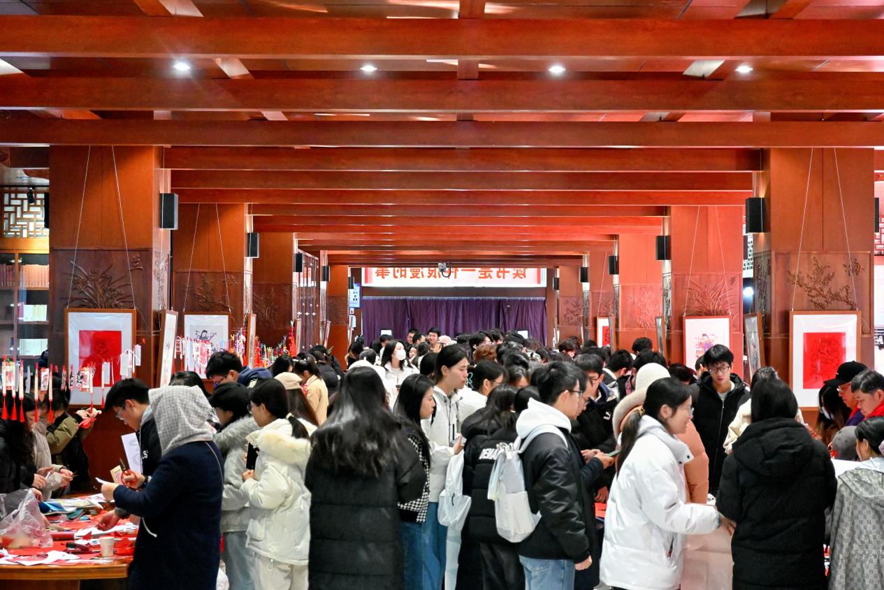 12月28日上午,学校“元旦送春”活动在图书馆卓越走廊举行。活动由校团委、图书馆、湖北鹰台书画院共同主办,艺苑书画协会、剪纸协会和创艺中国结协会协办,是湖北省文联荆楚“红色文艺轻骑兵”开展的志愿服务项目。剪窗花、写福字,猜灯谜、编织中国结……活动吸引了众多师生踊跃参与,大家在体验中华民族传统年味的同时,感受新年将至的温暖与喜悦。