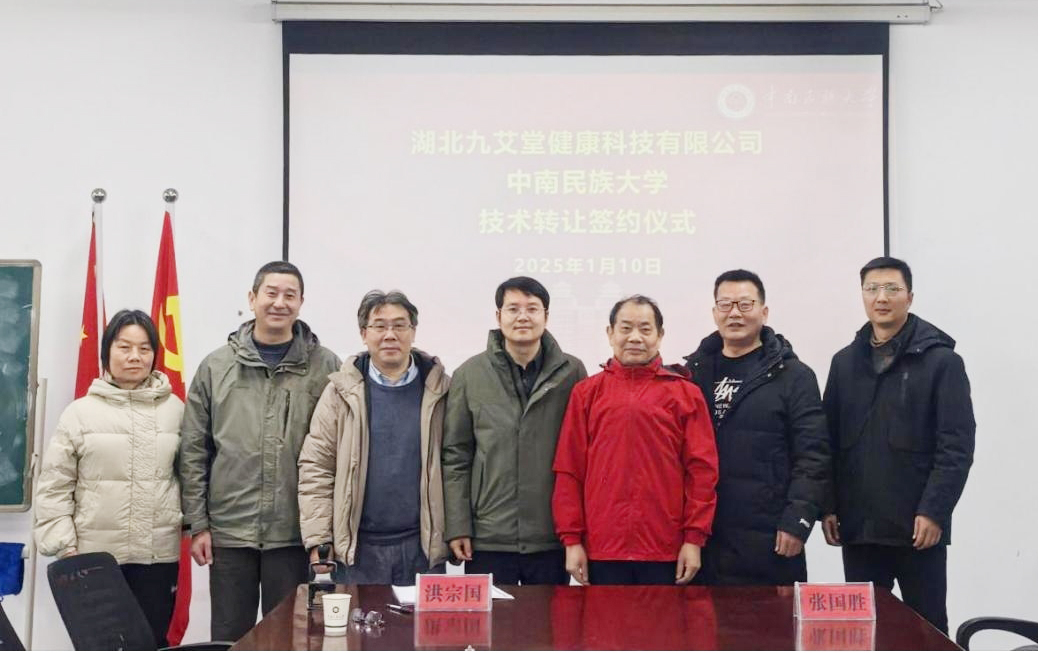 1月10日上午,我校与湖北九艾堂健康科技有限公司在药学院举行7项蕲艾系列专利转让签约仪式。科学研究发展院副院长张泽会,药学院党委书记杨春洪、副院长尹世金、洪宗国教授、肖新才教授,湖北九艾堂健康科技有限公司总经理张国胜等参加签约仪式。仪式由尹世金主持。